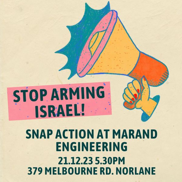 From 5.30pm this Thursday 21st December, local activists from Free Palestine Geelong will be protesting outside the Marand Engineering factory at 379 Melbourne Road in Norlane. Geelong Anarchist Communists call on supporters and friends to join the snap action.